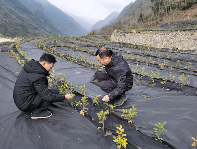 该行驻村第一书记查看茶树苗生长情况